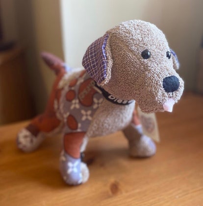 This keepsake Labrador is a cute and lovable companion which we will work with you to create using your loved ones clothing. Finished size is 30cm (12inches) tall, 38cm(15inches) long, nose to tail.